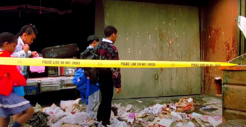 En la primera escena podemos verle con unos cuantos amigos yendo al colegio, mientras escuchan disparos como si fuese lo más habitual. De hecho, el grupo de amigos habla de asesinatos y armas, lo que desemboca en ir a husmear a la escena de un crimen que ha sucedido a penas unas horas atrás.